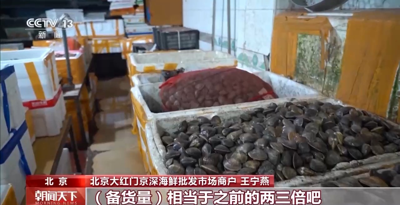 北京大紅門京深海鮮批發(fā)市場(chǎng)商戶 王寧燕:根據(jù)“五一”的情況,扇貝、生蠔這種適合聚餐的,我們會(huì)多備一點(diǎn),備貨量相當(dāng)于之前的兩三倍吧。