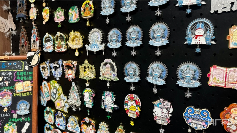 假日期間,各大文博場館、歷史文化街區(qū)等把握住機(jī)遇,推陳出新,創(chuàng)新形式,滿足游客多元化需求。哈爾濱中央大街將城市文化與AR技術(shù)相融合,推出了兼具科技感與城市文化的文創(chuàng)產(chǎn)品。“這款冰箱貼在去年的基礎(chǔ)上做了一個(gè)全新升級,結(jié)合AR技術(shù),通過手機(jī)‘掃一掃’功能,可以看到一個(gè)動態(tài)視頻,實(shí)現(xiàn)裸眼3D的效果。”中央大街龍粵魔法列車總經(jīng)理于洋說。