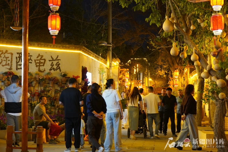 “五一”假期,庫(kù)車(chē)市熱鬧的夜晚。 孟文靜攝