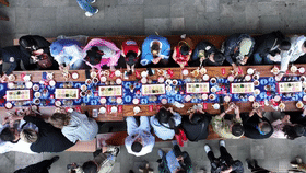 因?yàn)殡娪啊赌倪?》而火爆“出圈”的貴陽(yáng)越界影城,經(jīng)常舉辦“花式寵粉”的活動(dòng)。比如在影城門(mén)口擺起具有當(dāng)?shù)靥厣摹敖z娃娃”長(zhǎng)桌宴。