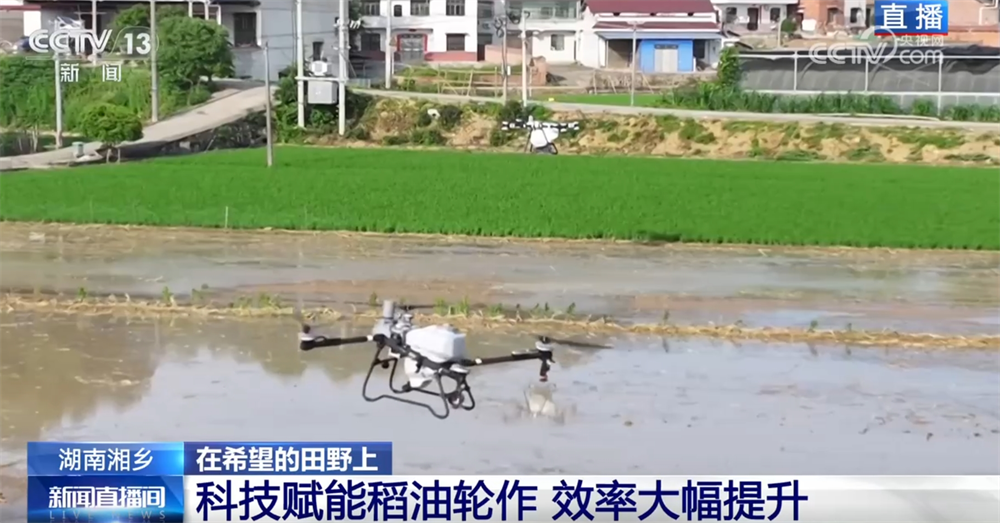在這個(gè)階段,還有一件非常重要的工作就是施肥。眼下,施肥已經(jīng)很少依靠人工了。現(xiàn)場(chǎng),大型的農(nóng)業(yè)無人機(jī)正在作業(yè),肥料均勻?yàn)⒃谔锢?。無人機(jī)還能做到自動(dòng)避障、自動(dòng)調(diào)節(jié)噴灑量,配備光譜儀還可以檢測(cè)莊稼的長勢(shì),作業(yè)1畝地只需要不到20秒。