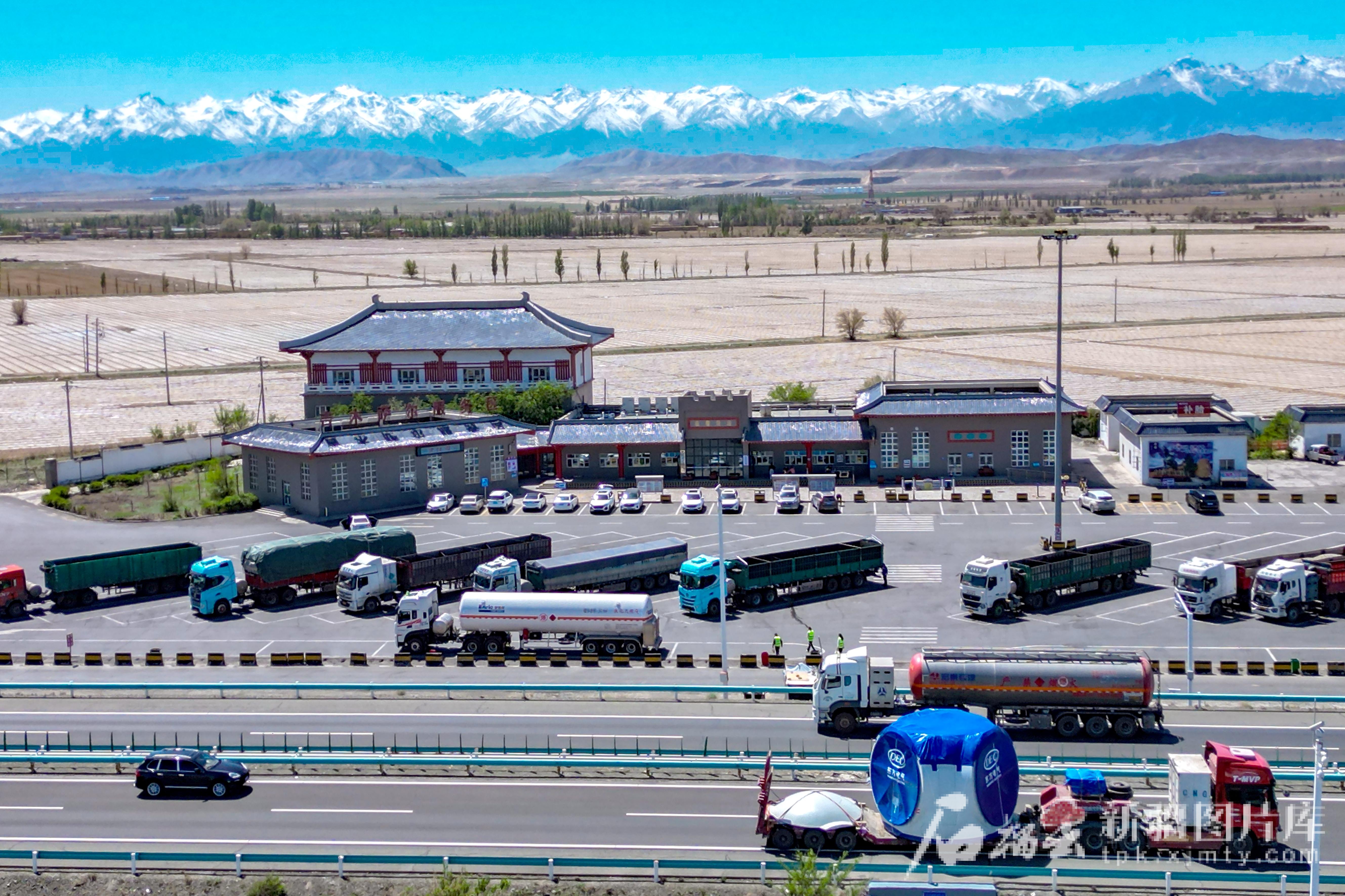 5月9日,京新高速吉木薩爾服務(wù)區(qū),車輛在服務(wù)區(qū)停靠。