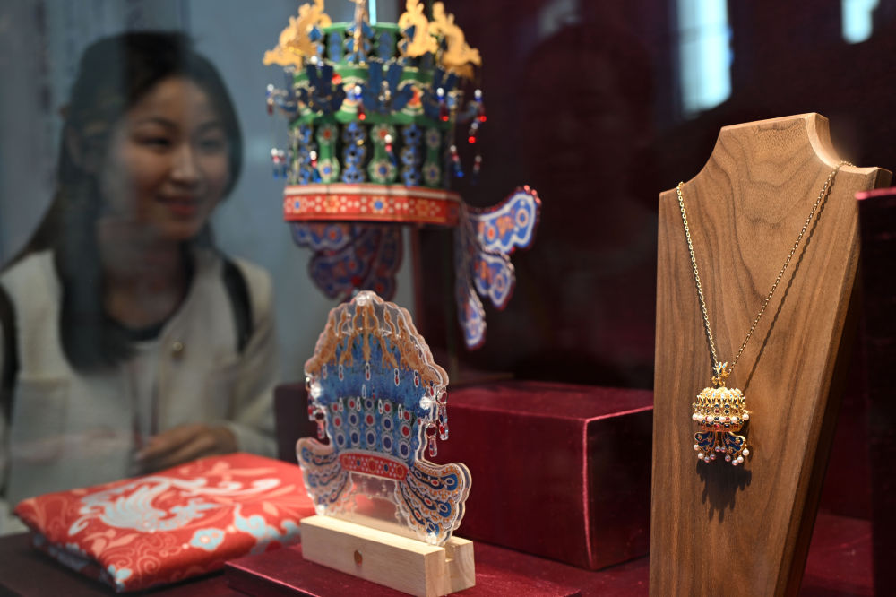 3月25日,觀眾在北京中國國家博物館選購鳳冠項鏈。新華社記者 金良快 攝