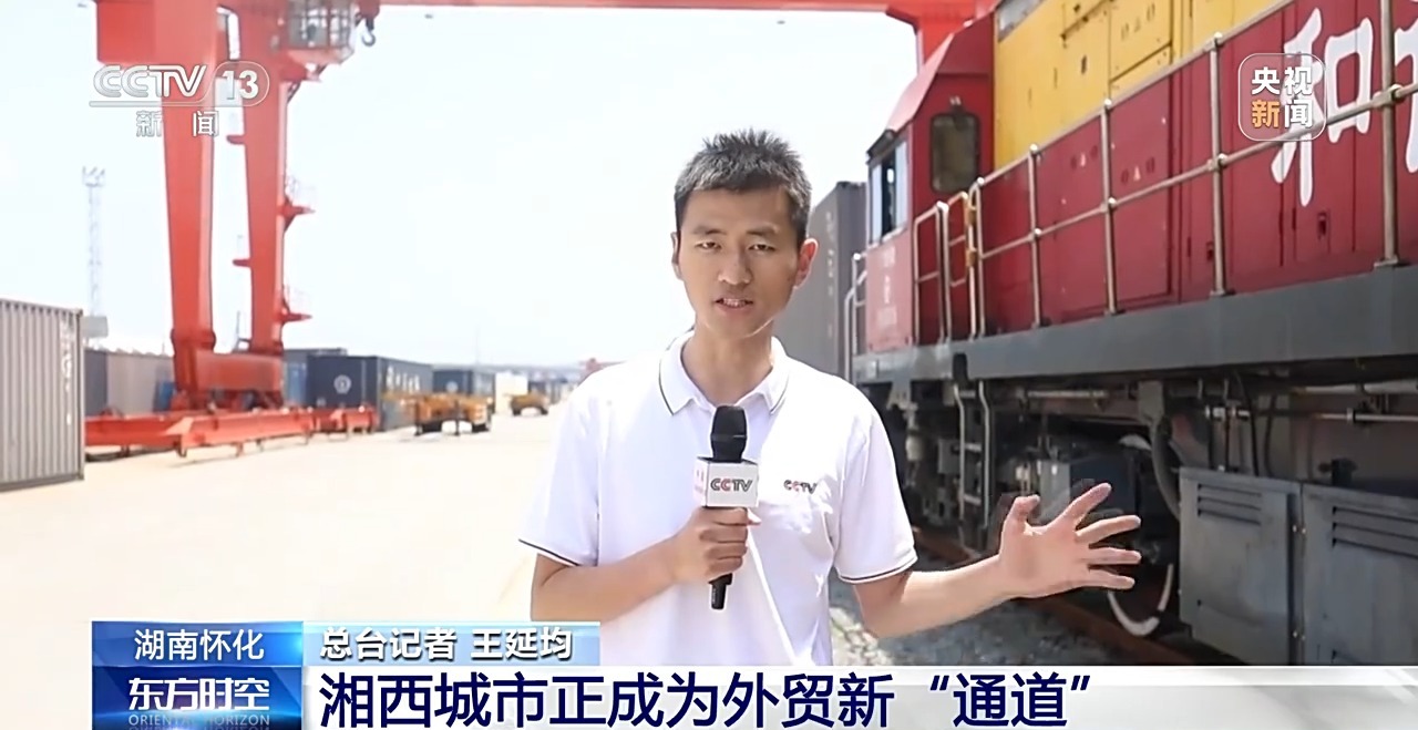 總臺(tái)記者 王延均:這是一條即將發(fā)往老撾的貨運(yùn)專線,一共有70標(biāo)箱,里面滿載著湖南省內(nèi)生產(chǎn)的新能源汽車、小家電、農(nóng)機(jī)、太陽能板等貨物。預(yù)計(jì)三天左右的時(shí)間就能把這些貨物從懷化運(yùn)到老撾萬象。目前,在這里,僅發(fā)往老撾萬象的貨運(yùn)專列每周都會(huì)有三列。