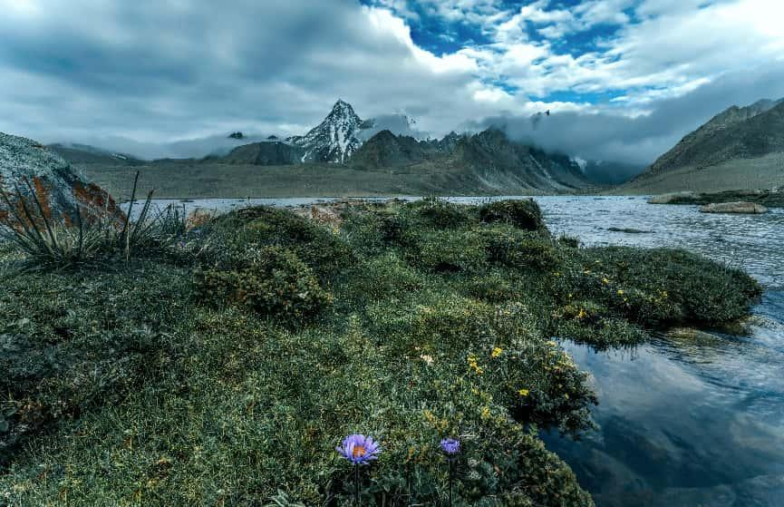 為了捕捉冷布崗日主峰的壯美,我們?cè)谛谐讨性庥鲋T多挑戰(zhàn)。在無人區(qū)行駛時(shí),車輛輪胎意外爆裂,我們?cè)诤0胃哌_(dá)5800米的地方體驗(yàn)了給汽車換輪胎的經(jīng)歷。這個(gè)經(jīng)歷太難忘了,我們基本從下午持續(xù)到天黑才最終成功把輪胎換好。但是由于天色已晚,我們無法繼續(xù)前行,只能在兩輛車上過了一夜。