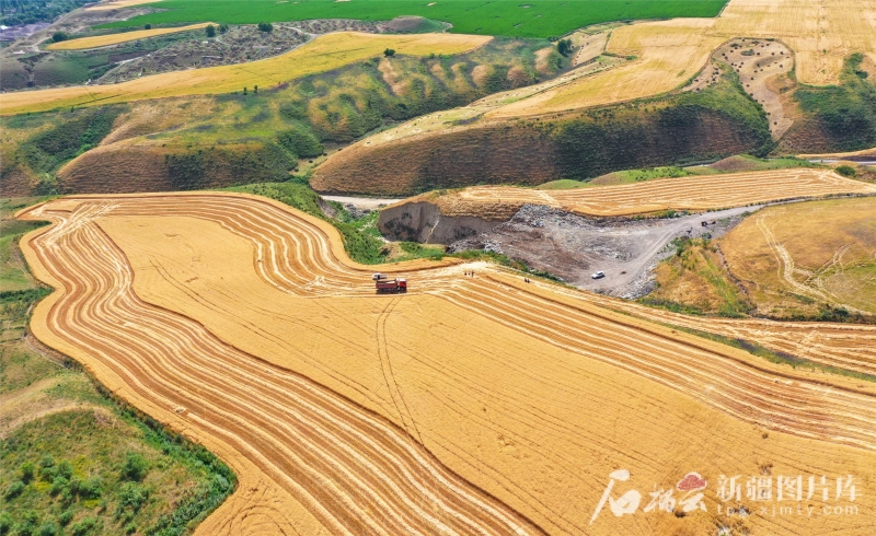 2024年6月24日,在新源縣則克臺(tái)鎮(zhèn)則克臺(tái)村的麥田里,隨著大型收割機(jī)駛過(guò),麥穗、秸稈有序分離,一顆顆麥粒從收割機(jī)出料口傾瀉而下,裝進(jìn)運(yùn)糧車?yán)?。張文庭攝