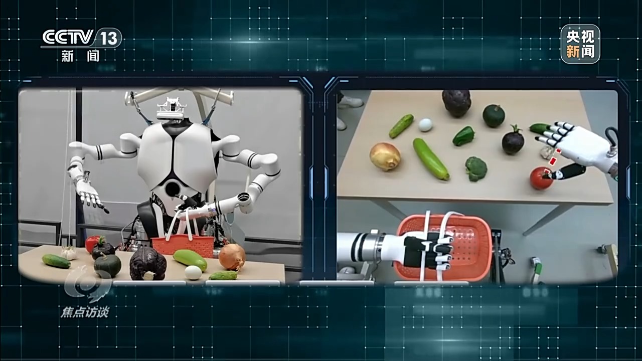 在中國(guó)科學(xué)院自動(dòng)化研究所多模態(tài)人工智能系統(tǒng)全國(guó)重點(diǎn)實(shí)驗(yàn)室,科研人員正在對(duì)人形機(jī)器人Q5進(jìn)行語(yǔ)言指令和視覺(jué)跟隨訓(xùn)練。