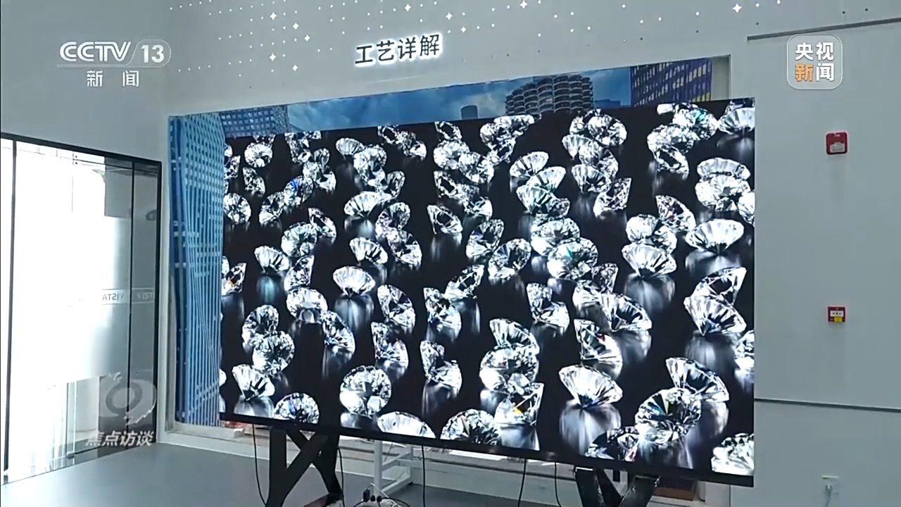 維信諾Micro-LED技術(shù)負(fù)責(zé)人、成都辰顯光電有限公司總經(jīng)理 黃秀頎:這款產(chǎn)品歷經(jīng)了8年的研發(fā)時(shí)間,到現(xiàn)在推出全球最新的135英寸TFT基Micro-LED(顯示屏)。它的特點(diǎn),亮度非常高,而且色彩非常細(xì)膩,還原度很高。但是這塊屏是拼接出來(lái)的,上面總共有2400萬(wàn)顆LED發(fā)光點(diǎn),大的135英寸里面有200片屏,每個(gè)屏還要把它組裝成箱體,這里有25個(gè)箱體。可以根據(jù)客戶的需求定制大小,只要把箱體拼上去就可以無(wú)限擴(kuò)展,現(xiàn)在拼縫控制的是幾十個(gè)微米量級(jí),大概就是頭發(fā)絲直徑的五分之一。