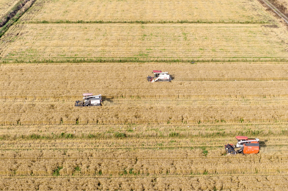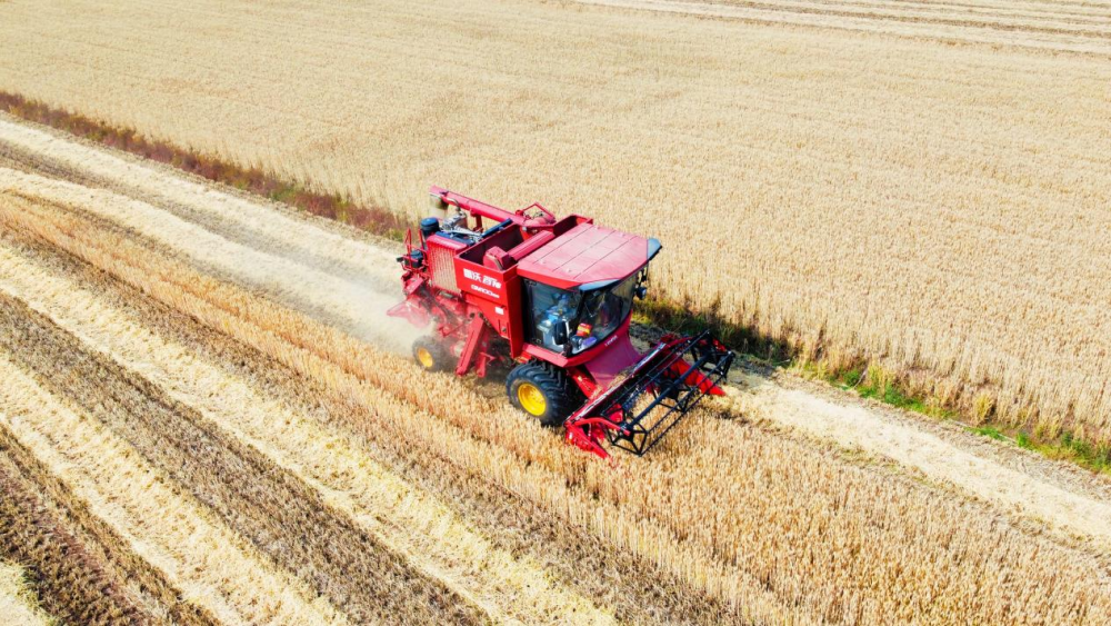 全國“三夏”大規(guī)模小麥機收全面展開。記者在河南、山東、浙江、江蘇等地看到,收割機開足馬力馳騁在麥田中,一排排小麥被整齊地切割、脫?!瓘V袤農田一片繁忙景象。