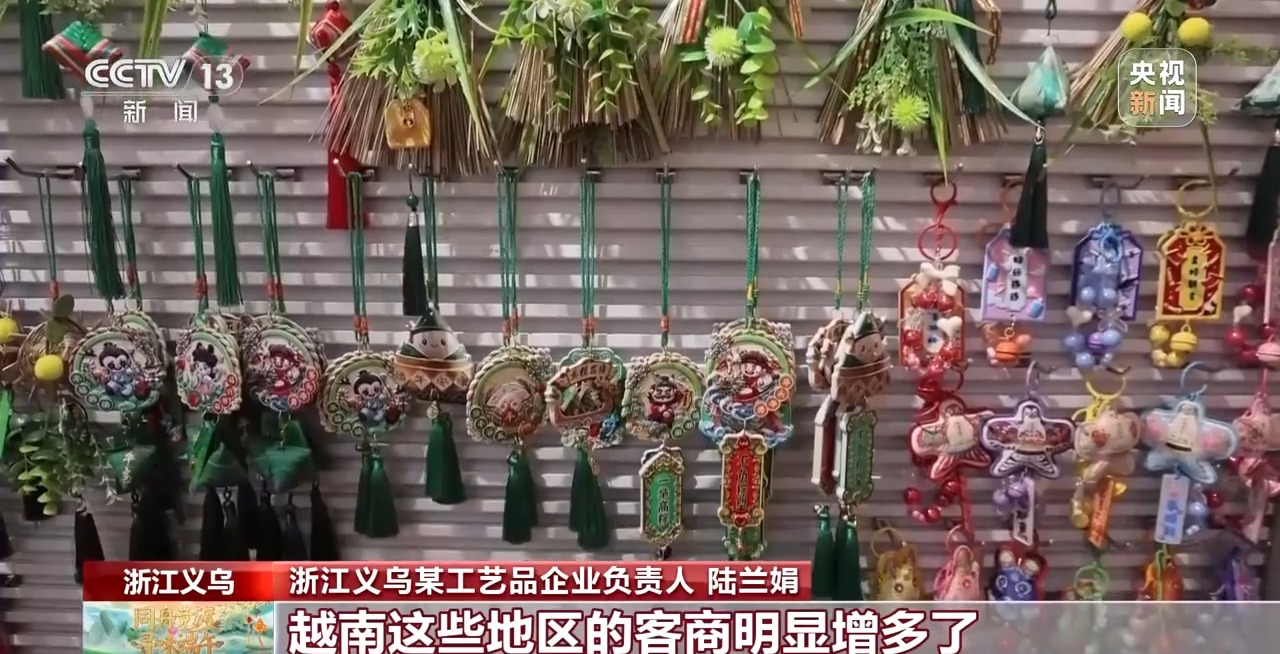 浙江義烏某工藝品企業(yè)負(fù)責(zé)人 陸蘭娟:以前香囊的消費(fèi)群體以國(guó)內(nèi)為主,這兩年,越來(lái)越多的外國(guó)客商來(lái)咨詢。前年賣出了15萬(wàn)個(gè)左右,去年訂單翻了一番,有30萬(wàn)個(gè)。那今年的訂單也明顯超過了過去,尤其是新加坡、馬來(lái)西亞、越南這些地區(qū)的客商明顯增多。