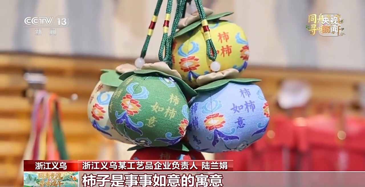 義烏某工藝品企業(yè)負(fù)責(zé)人 陸蘭娟:今年,在香囊的外觀設(shè)計(jì)上面,我們結(jié)合了中國(guó)傳統(tǒng)節(jié)日祝福的元素,設(shè)計(jì)了立體葫蘆、柿子等款式。像葫蘆的形狀有福祿的意思;柿子有事事如意的寓意,都是今年的“爆款”。