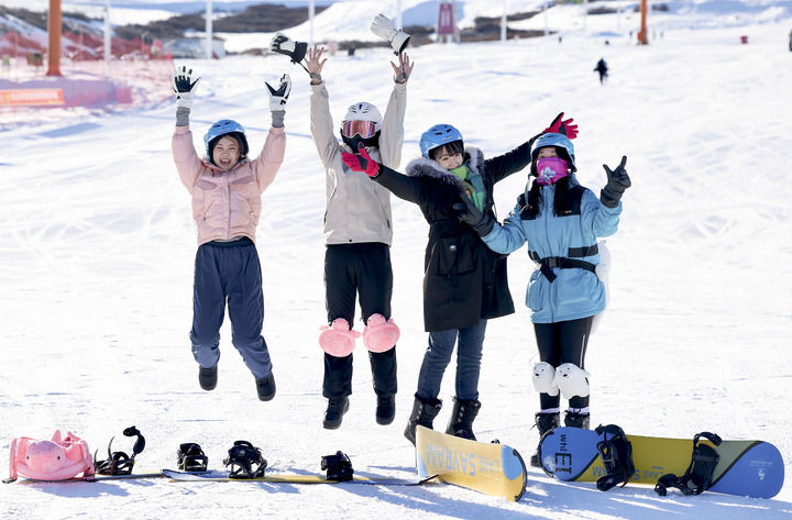 2025年1月27日,幾名滑雪愛好者在新疆絲綢之路山地度假區(qū)合影留念。新華社記者 王菲 攝