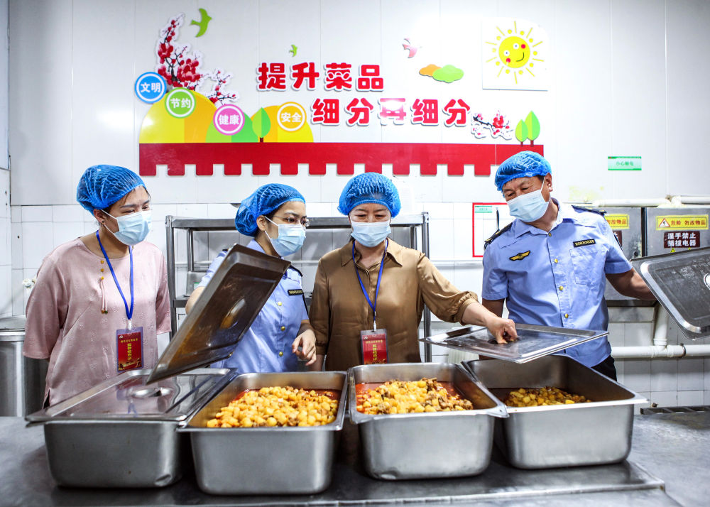 6月5日,在河南省焦作市博愛(ài)縣第一中學(xué),縣紀(jì)委監(jiān)委工作人員聯(lián)合市場(chǎng)監(jiān)管部門(mén)對(duì)考點(diǎn)食堂開(kāi)展食品安全專(zhuān)項(xiàng)監(jiān)督檢查。新華社發(fā)(程全 攝)
