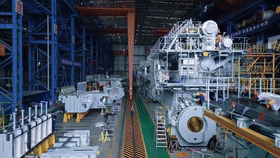 記者在位于青島西海岸新區(qū)的中船發(fā)動機生產車間內看到,一臺四五層樓高的船舶發(fā)動機正在緊張安裝當中。