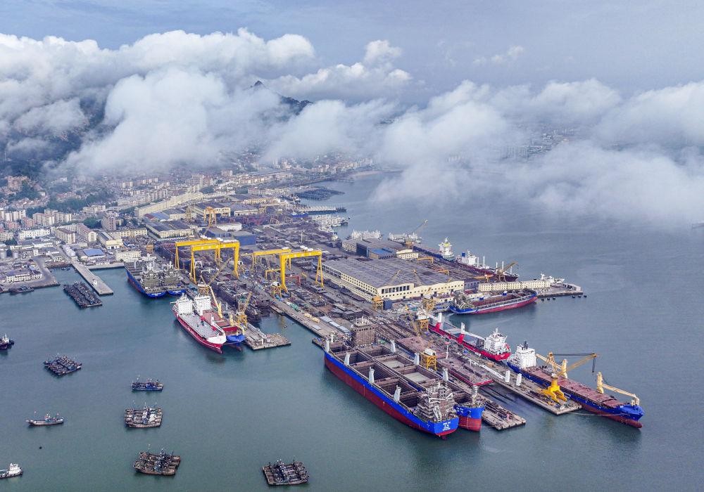 5月8日拍攝的山東省榮成市石島管理區(qū)修造船產業(yè)基地船塢(無人機照片)。新華社發(fā)(李信君攝)