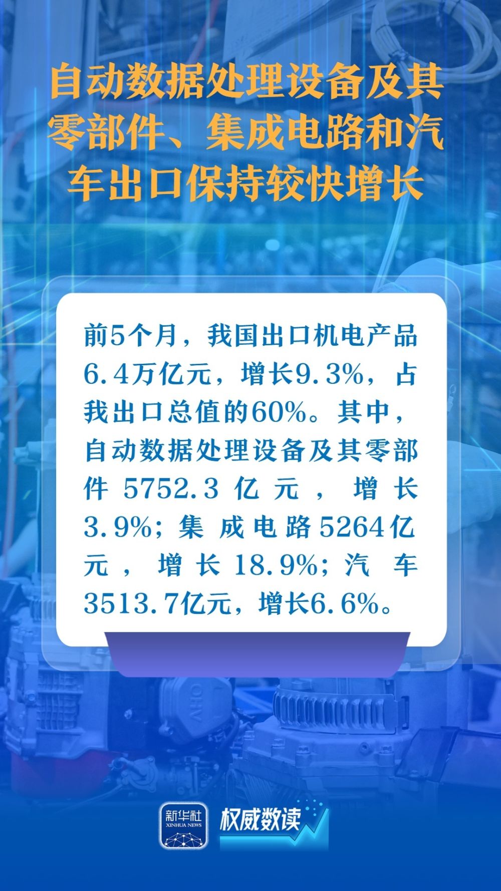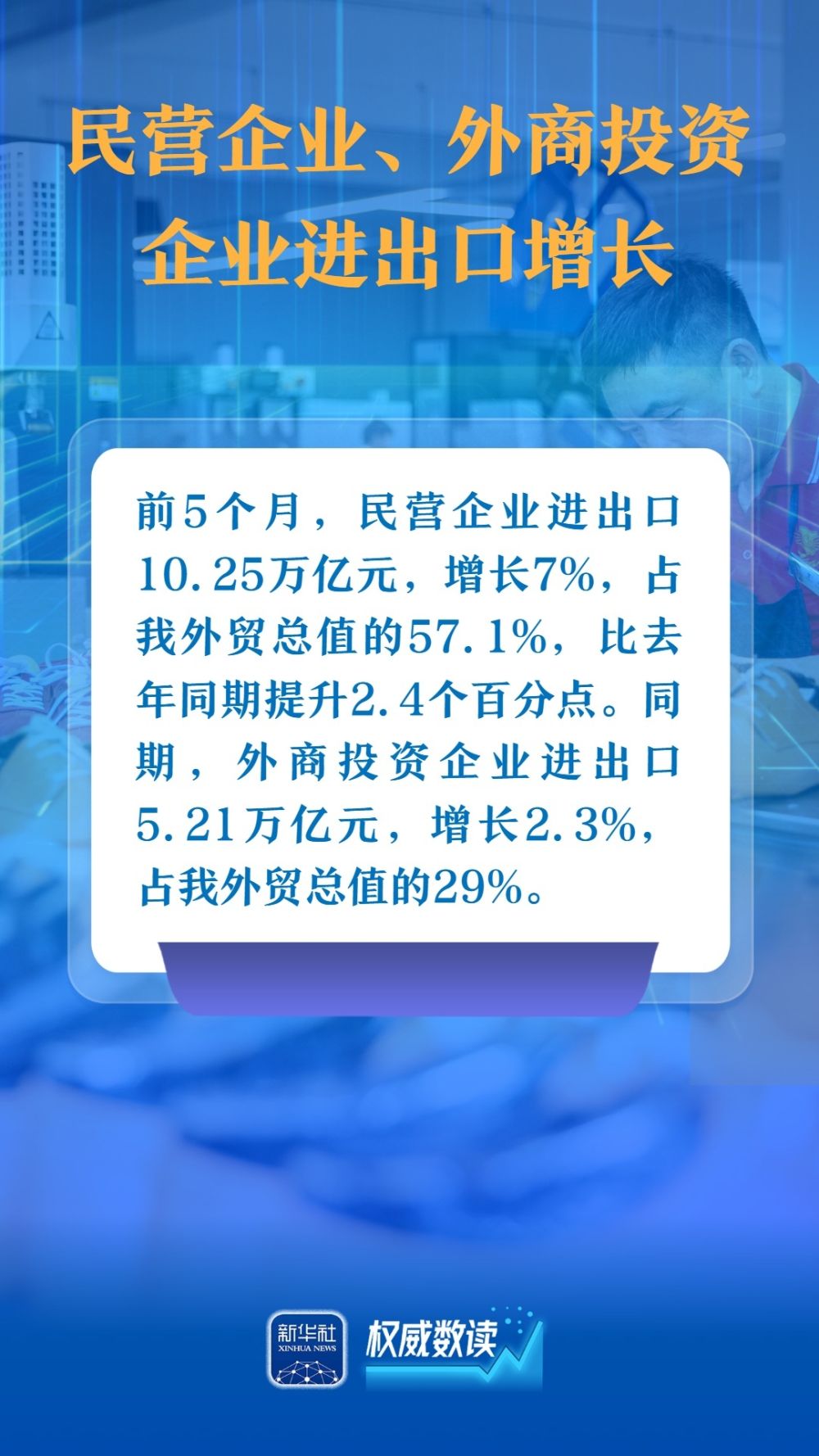 海關(guān)總署9日發(fā)布數(shù)據(jù),今年前5個(gè)月,我國(guó)貨物貿(mào)易進(jìn)出口總值17.94萬(wàn)億元人民幣,同比增長(zhǎng)2.5%。以下幾組數(shù)據(jù),展示出我國(guó)對(duì)外貿(mào)易在外部壓力下依然保持較強(qiáng)韌性。