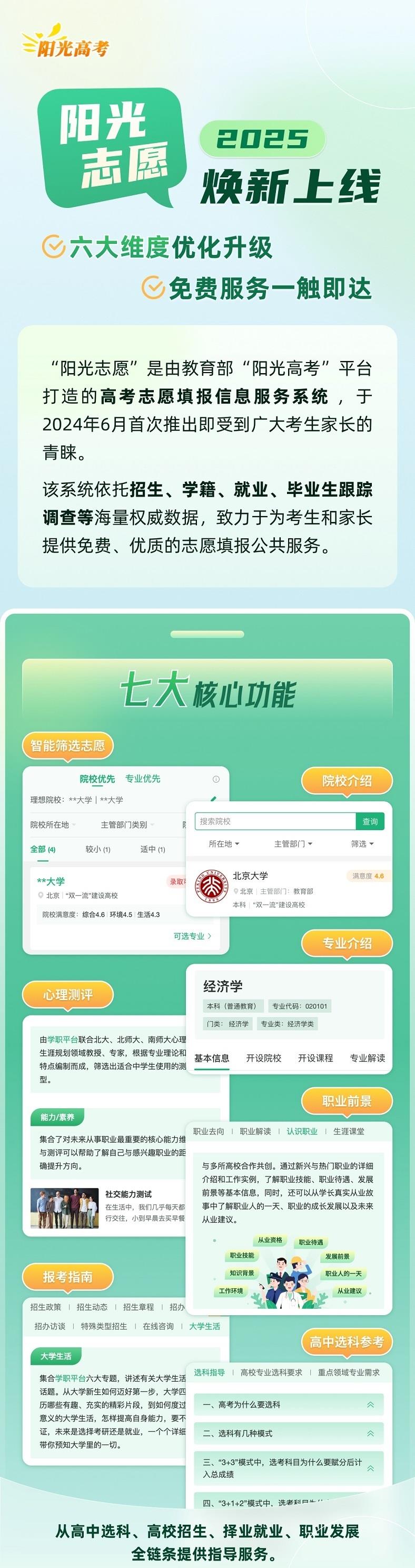 2025年,“陽(yáng)光志愿”實(shí)現(xiàn)6大維度優(yōu)化升級(jí),更好服務(wù)考生家長(zhǎng)科學(xué)決策。