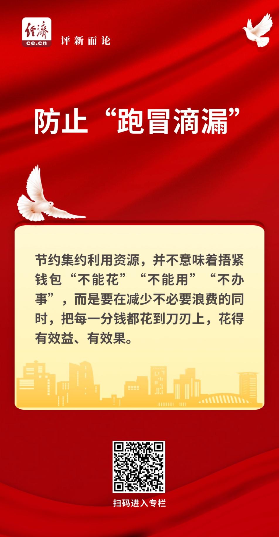 當(dāng)然,節(jié)約集約利用資源,并不意味著捂緊錢包“不能花”“不能用”“不辦事”,而是要在減少不必要浪費(fèi)的同時(shí),把每一分錢都花到刀刃上,花得有效益、有效果。