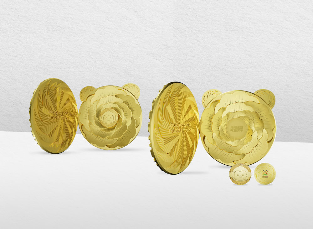 此外,“竹光”以其精巧的內(nèi)部結(jié)構(gòu)引人矚目,詮釋了“分享”的核心理念。輕輕向左翻開獎牌正面,一枚獨特的金屬質(zhì)徽章便呈現(xiàn)眼前:一面是靈動的川金絲猴“錦仔”,另一面則由太陽神鳥環(huán)繞成都世運會會徽。