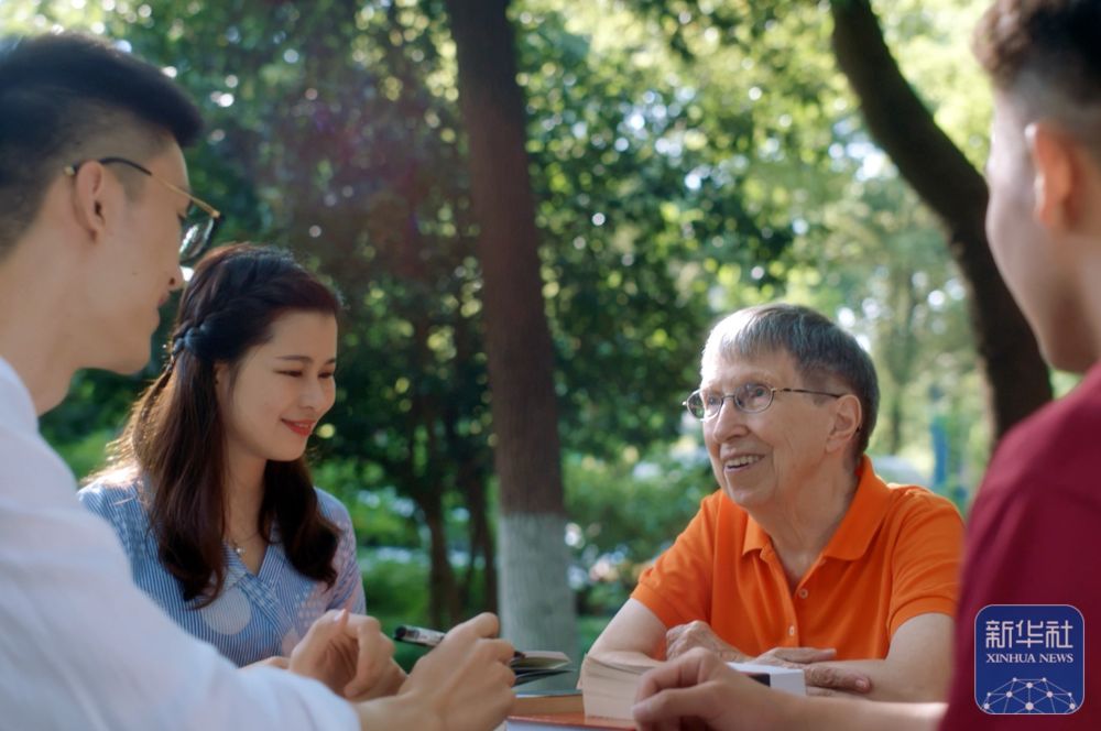 2019年,白麗詩(shī)與上海外國(guó)語(yǔ)大學(xué)的學(xué)生在一起。新華社發(fā)(上海外國(guó)語(yǔ)大學(xué)供圖)