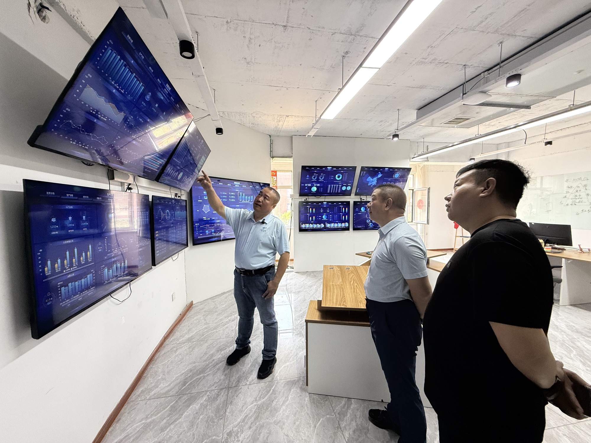 胡建龍(左一)向參觀者介紹AIPA算法中樞(央廣網(wǎng)發(fā) 企業(yè)供圖)