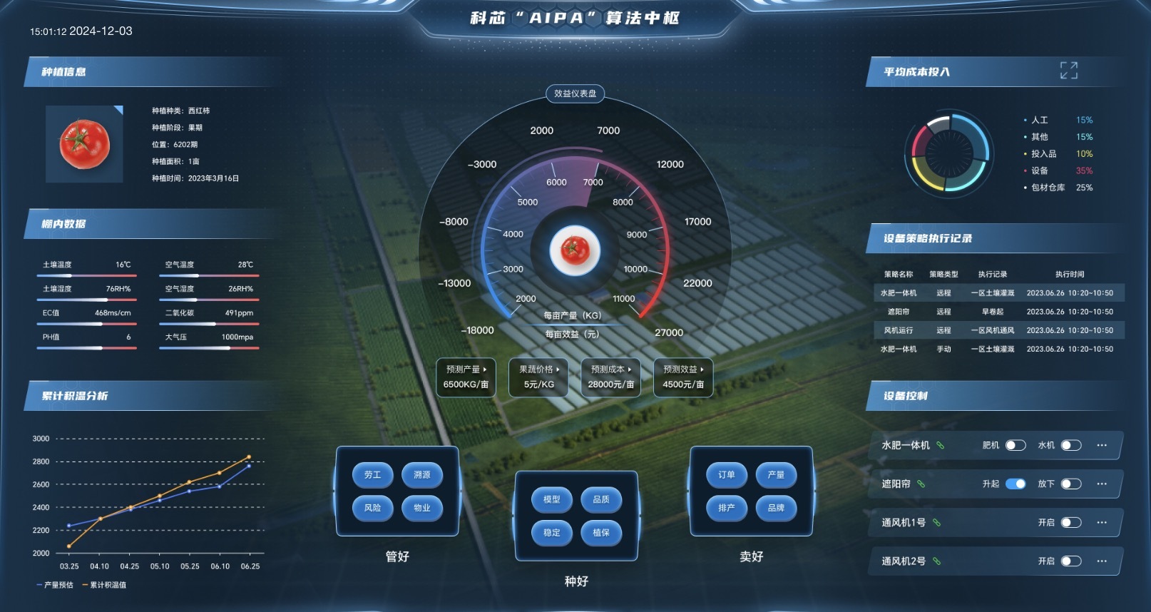 科芯自主研發(fā)的AIPA系統(tǒng),整合了多項(xiàng)新興技術(shù),能夠精準(zhǔn)描述作物的生長(zhǎng)動(dòng)態(tài),并作出生產(chǎn)力預(yù)測(cè)與效益評(píng)估。胡建龍形象地比喻:“這就像是給農(nóng)作物配備了一位24小時(shí)在線的‘智能管家’,它能根據(jù)作物的需求,自動(dòng)調(diào)整灌溉、施肥、遮陽(yáng)等操作,確保作物在最佳環(huán)境中生長(zhǎng)。”