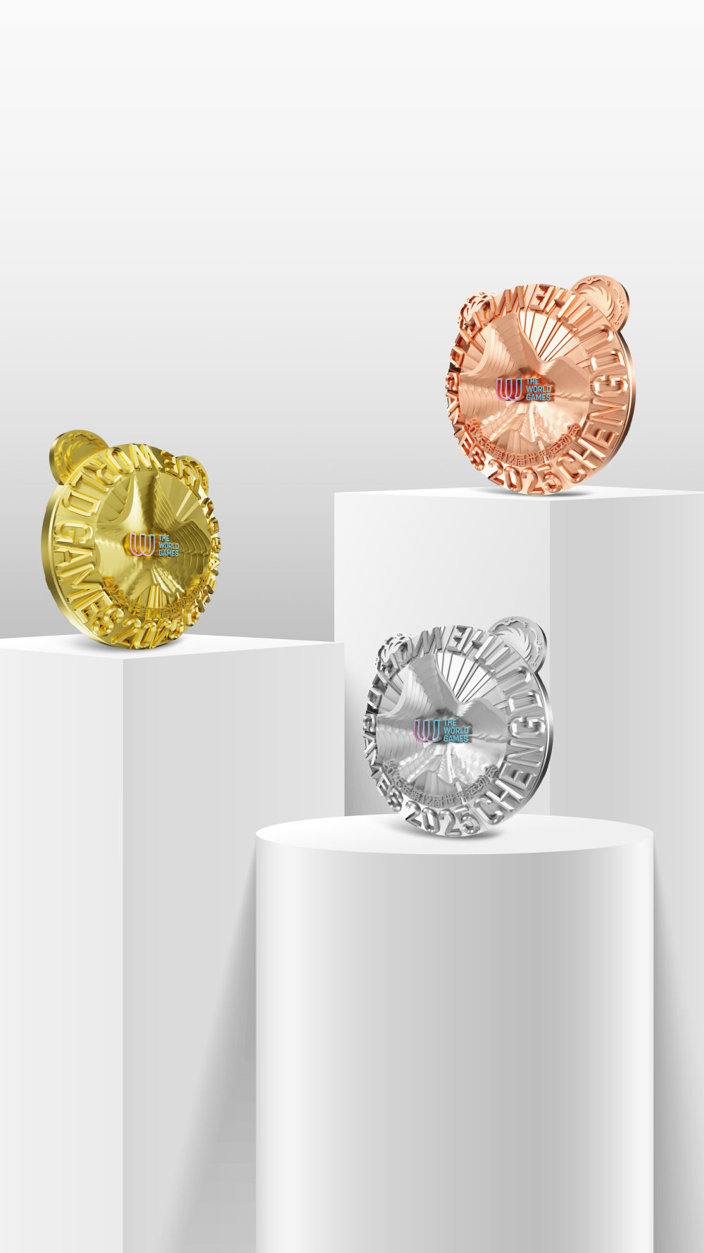 這是成都世運會金、銀、銅牌效果圖。6月19日,2025年第12屆世界運動會獎牌“竹光”正式亮相。新華社發(fā)(成都世運會執(zhí)委會供圖)