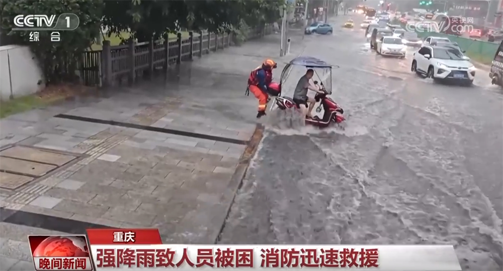 重慶也受到強(qiáng)降雨的影響。在大渡口區(qū)鋼花路紅樓醫(yī)院附近,消防人員發(fā)現(xiàn)一名摩托車騎手被困水中,有被沖走的危險。經(jīng)過救援,該男子被轉(zhuǎn)移至安全地帶。據(jù)介紹,目前,大渡口區(qū)消防救援局共處置相關(guān)警情16起,出動130余人次參與救援工作。