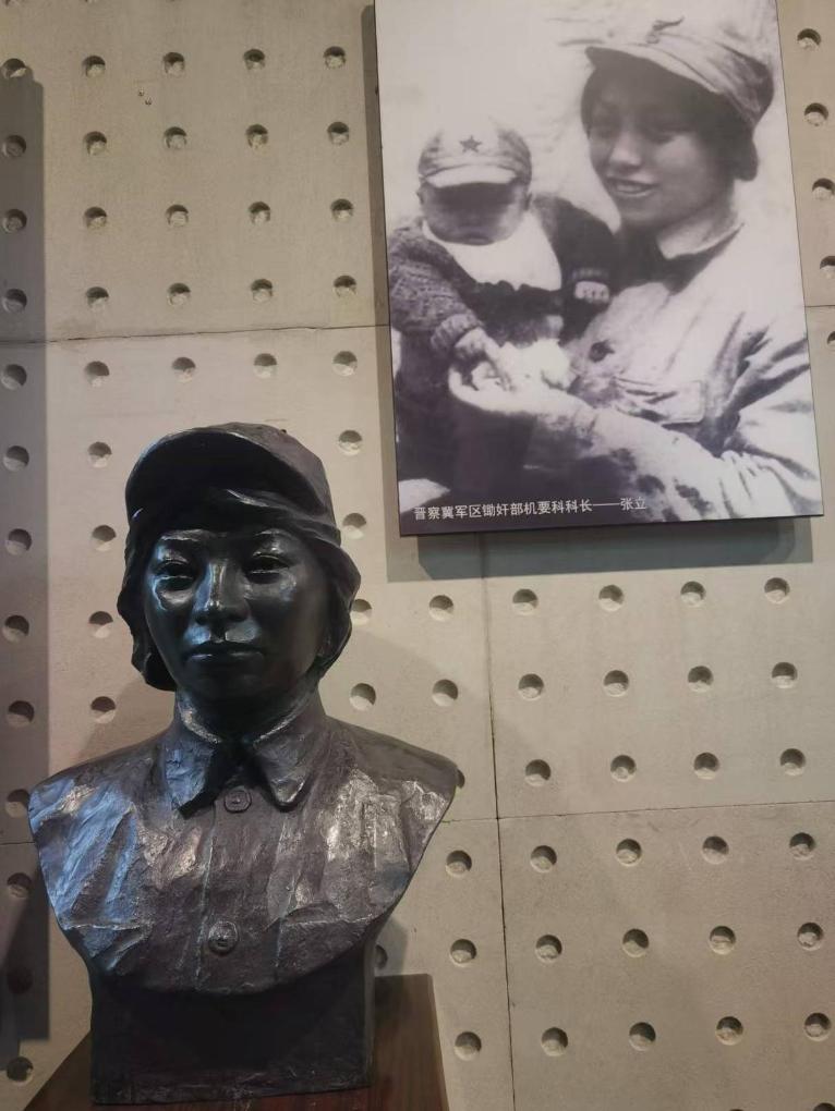 “這位是偉大的母親張立,她是晉察冀軍區(qū)鋤奸部機要科科長。在阜平的‘柏崖慘案’中,她不幸落入敵人手中,面對日軍的嚴(yán)刑拷打,她寧死不屈,日軍將她不滿三個月大的小兒子扔進滾燙的開水鍋中,活活煮死。張立也被砍掉一只右臂后,被用刺刀挑死,犧牲時年僅23歲。”孫旗綺動情地向參觀者介紹。