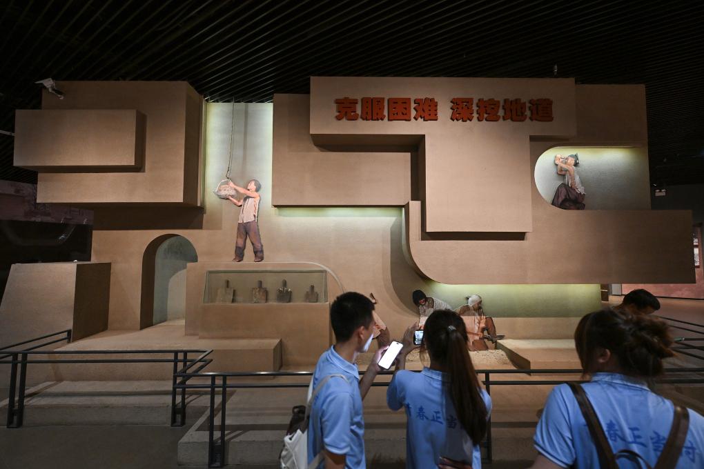 7月6日,游客在冉莊地道戰(zhàn)紀(jì)念館內(nèi)參觀拍攝。新華社記者 李鑫 攝
