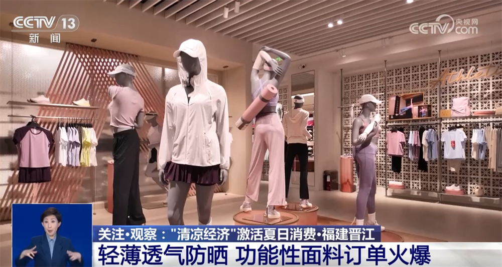 除了旅游消費,盛夏時節(jié),防曬產(chǎn)品也迎來銷售旺季。在福建晉江,這里的多家服裝生產(chǎn)或紡織面料企業(yè)生產(chǎn)的涼感、速干、驅(qū)蚊、防曬等功能性面料訂單火爆,備受市場青睞。