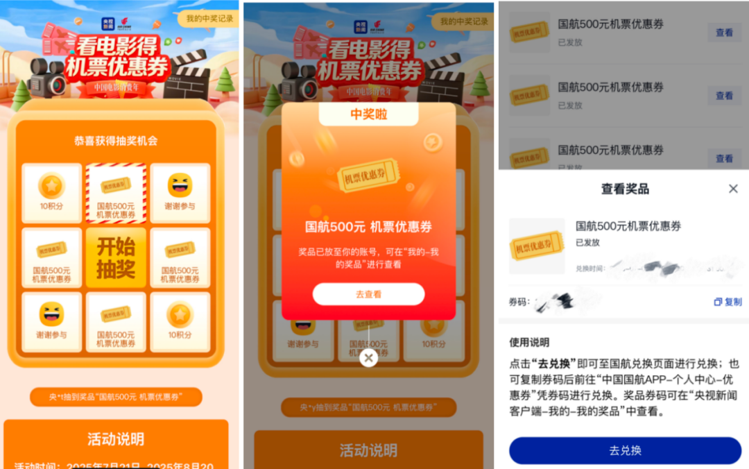 “買電影票抽機(jī)票代金券”