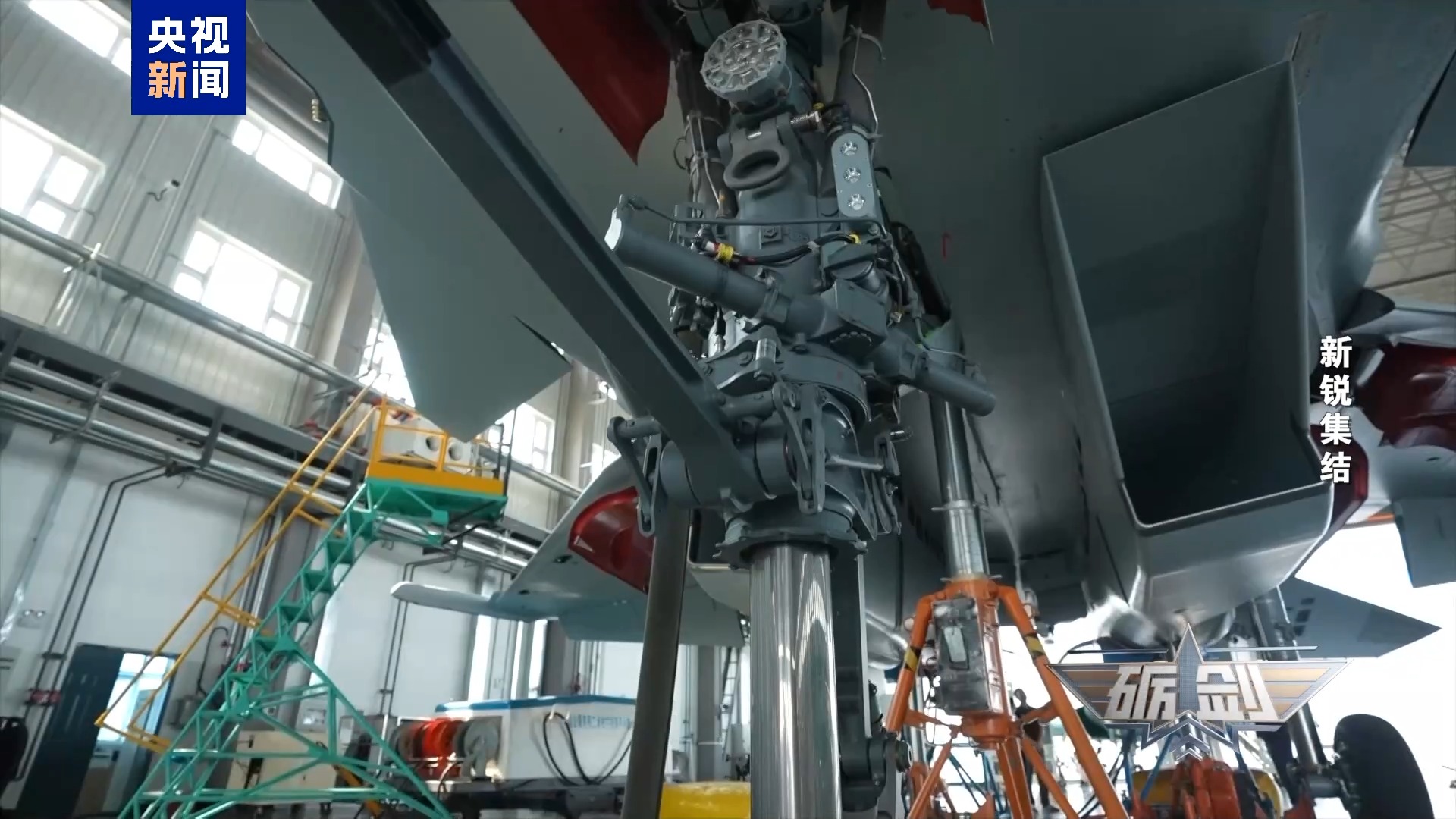 空軍特級飛行員 殲-15首飛試飛員 李國恩:起落架設(shè)計還是比較復(fù)雜的。一是對強度的考驗,二是在前起落架觸及甲板的時候,能量比較好地得到釋放緩沖,這是前起落架設(shè)計的一個難點。你可以看到與其他的陸基飛機比,這個起落架要粗。我國工業(yè)水平整體也在進步,未來我們希望它結(jié)構(gòu)要細一點、輕一點,飛機越輕,空中的性能越好。