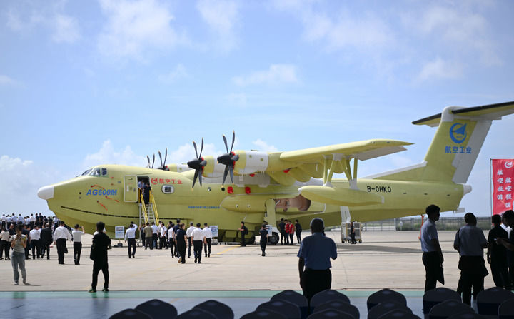 2025年6月11日在珠海中航通飛華南飛機(jī)工業(yè)有限公司拍攝的批量生產(chǎn)的首架AG600飛機(jī)。當(dāng)日,大型水陸兩棲飛機(jī)AG600“鯤龍”獲頒中國民航局生產(chǎn)許可證,標(biāo)志著AG600飛機(jī)正式邁入批量生產(chǎn)階段。新華社記者 鄧華 攝
