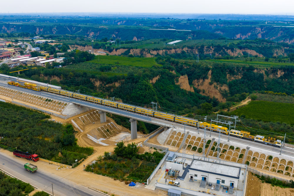 西延高鐵正在有序推進電氣化設備的精調(diào)。(中國鐵路西安局集團有限公司供圖)