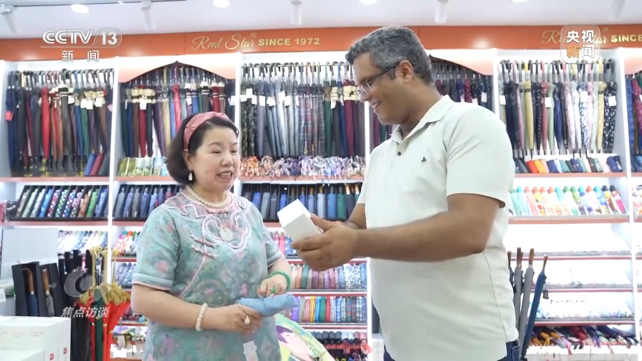 張吉英是義烏小商品市場(chǎng)的一位傘具經(jīng)營戶。今年,她店鋪里一款經(jīng)過創(chuàng)新設(shè)計(jì)的防曬傘,在國外掀起了一股流行風(fēng)潮,與國內(nèi)消費(fèi)者追求防曬傘小巧輕便不同,國外客戶更偏愛大尺寸款式。比如在中東地區(qū),人們喜歡雨傘里面能噴水霧的款式,以追求更好的降溫體驗(yàn)。