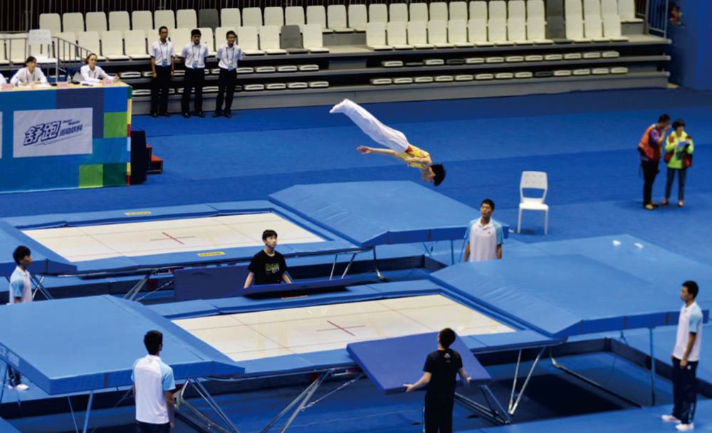 圖為蹦床項(xiàng)目比賽。圖片來(lái)自第12屆世運(yùn)會(huì)網(wǎng)上新聞中心