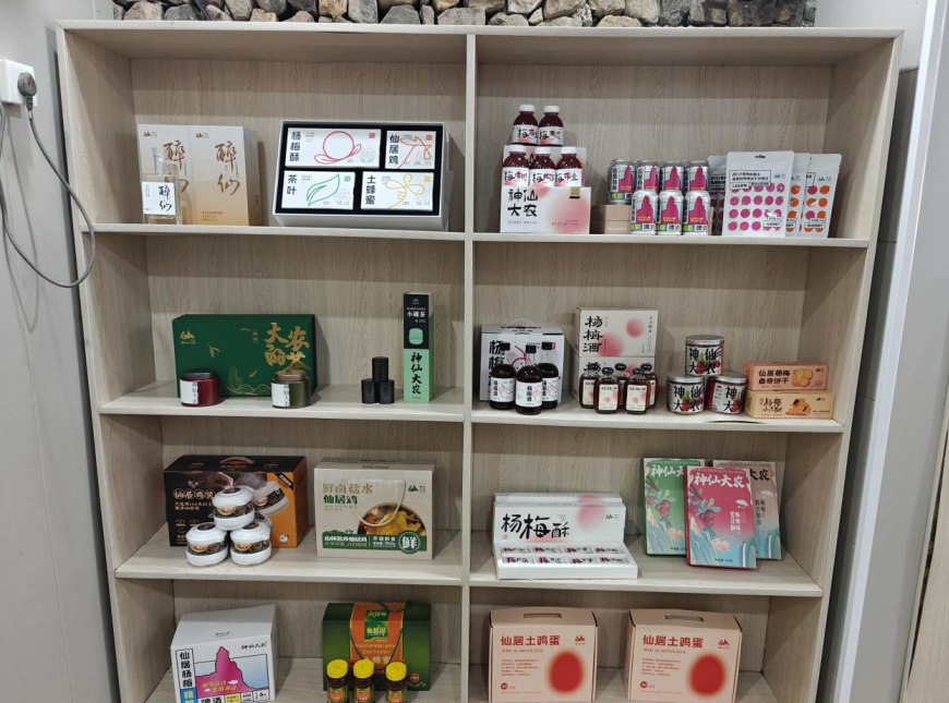 在不遠處的“蜜蜂工坊”小屋,墻面貼的“蜂富林坑”四字格外醒目。土蜂蜜、土雞蛋、楊梅酒、茶葉等特色農產品被擺得整整齊齊。