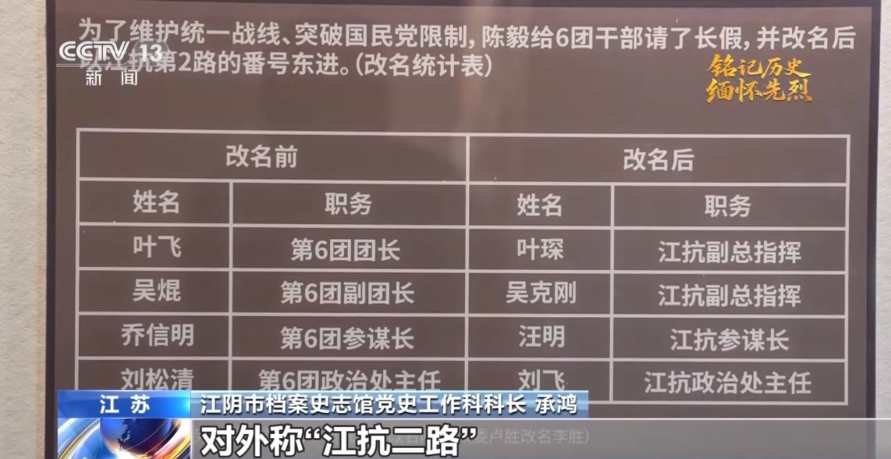 江陰市檔案史志館黨史工作科科長 承鴻:1939年4月,新四軍軍部部署六團(tuán)準(zhǔn)備向東路地區(qū)發(fā)展。5月,六團(tuán)在葉飛、吳焜等率領(lǐng)下,從(江蘇)茅山地區(qū)出發(fā)東進(jìn)。為了防止國民黨頑固派阻撓和破壞,六團(tuán)沿用“江南抗日義勇軍”的番號,以地方抗日武裝的名義,對外稱江抗二路。吳焜化名吳克剛,任副總指揮兼二路司令,隨同葉飛東進(jìn)。