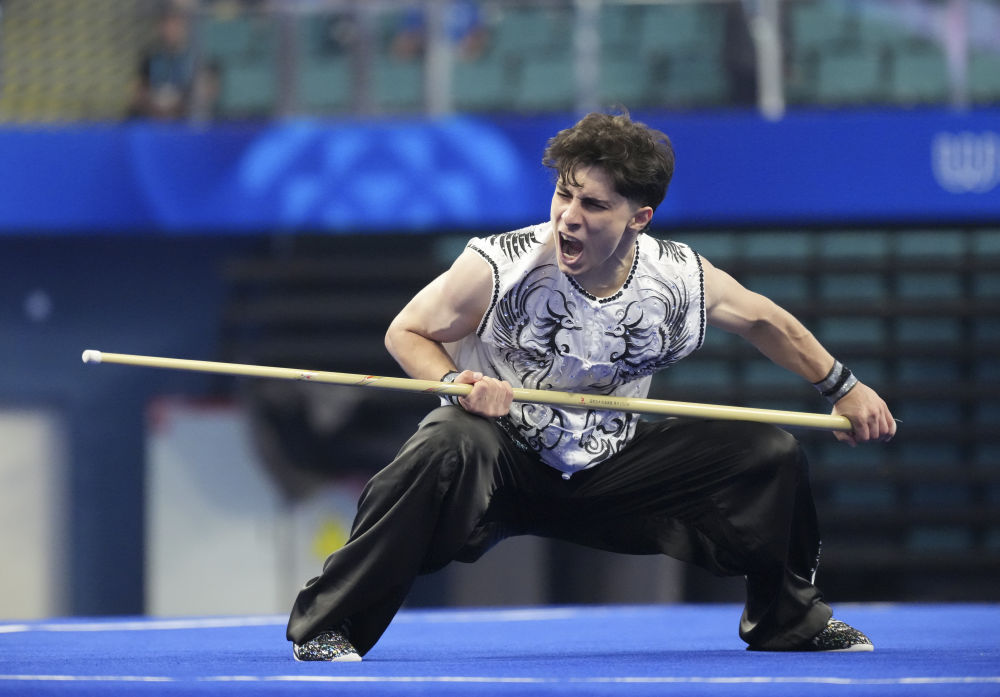 8月8日,伊朗選手沙欣在南棍比賽中。新華社記者 徐速繪 攝