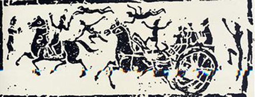 斜索戲車畫像磚以線面結(jié)合的手法分層敘事