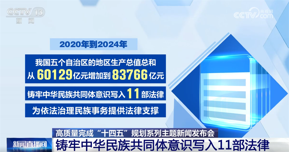 據(jù)了解,2020年到2024年,我國五個自治區(qū)的地區(qū)生產總值總和從60129億元增加到83766億元。鑄牢中華民族共同體意識寫入11部法律,為依法治理民族事務提供法律支撐。