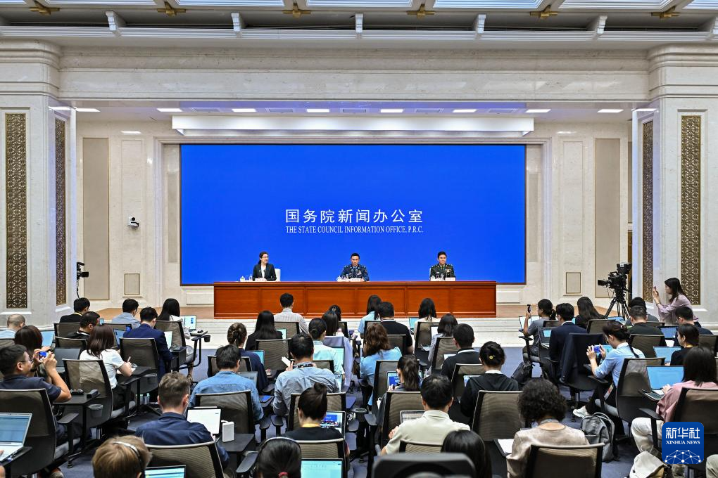 8月20日,國務院新聞辦公室在北京舉行新聞發(fā)布會,閱兵領導小組辦公室副主任、中央軍委聯合參謀部作戰(zhàn)局少將副局長吳澤棵,中國人民解放軍中部戰(zhàn)區(qū)閱兵指揮機構辦公室常務副主任、政治工作部少將副主任徐貴忠介紹閱兵準備工作有關情況,并答記者問。新華社記者 李鑫 攝