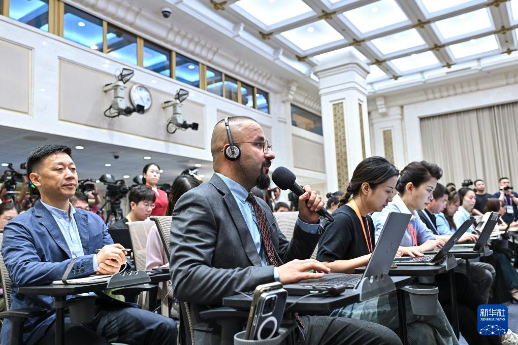 8月20日,國務院新聞辦公室在北京舉行新聞發(fā)布會,閱兵領導小組辦公室副主任、中央軍委聯合參謀部作戰(zhàn)局少將副局長吳澤棵,中國人民解放軍中部戰(zhàn)區(qū)閱兵指揮機構辦公室常務副主任、政治工作部少將副主任徐貴忠介紹閱兵準備工作有關情況,并答記者問。這是記者在現場提問。新華社記者 李鑫 攝