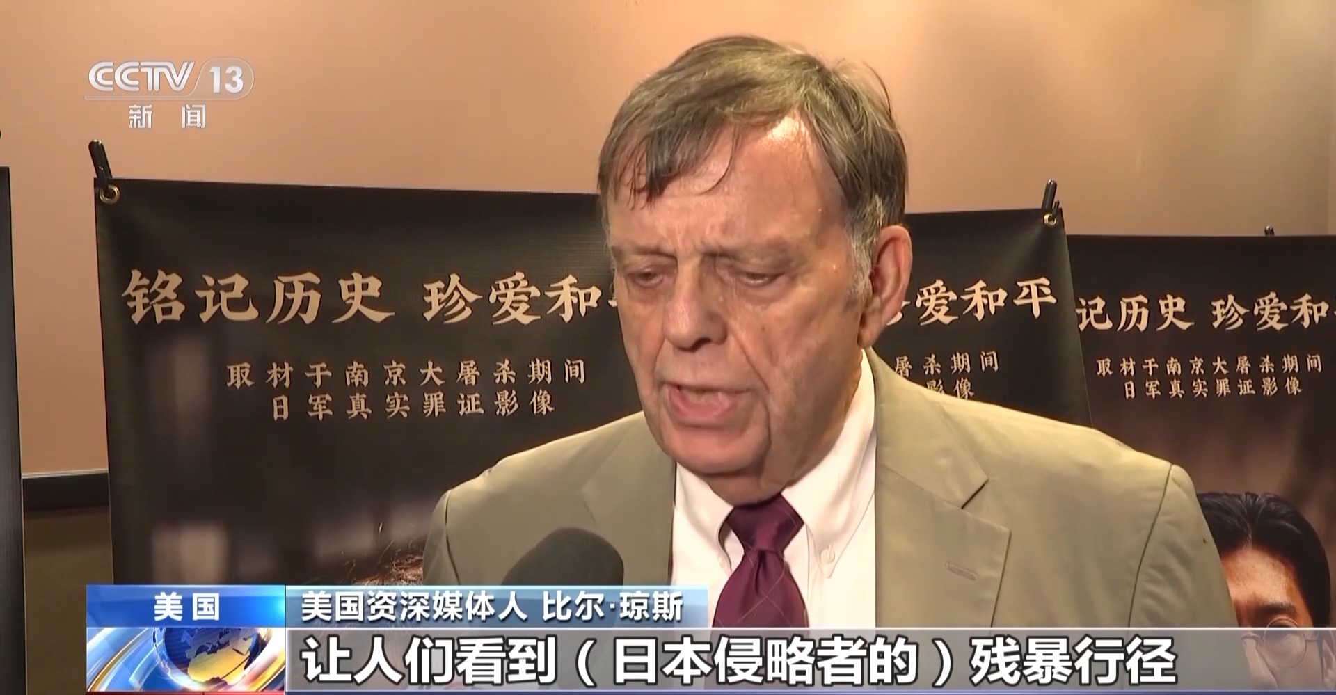 美國資深媒體人 比爾·瓊斯:我認為通過(《南京照相館》)這部電影,讓人們看到(日本侵略者的)殘暴行徑。這部電影喚醒人們的良知,讓我們思考應(yīng)該向哪個方向前進。
