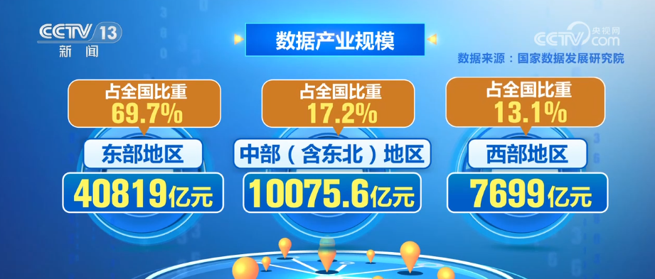我國數(shù)據(jù)產(chǎn)業(yè)呈現(xiàn)梯次分布格局,東部、中部(含東北)和西部地區(qū)的數(shù)據(jù)產(chǎn)業(yè)規(guī)模分別為40819億元、10075.6億元和7699億元,占全國比重分別為69.7%、17.2%和13.1%。
