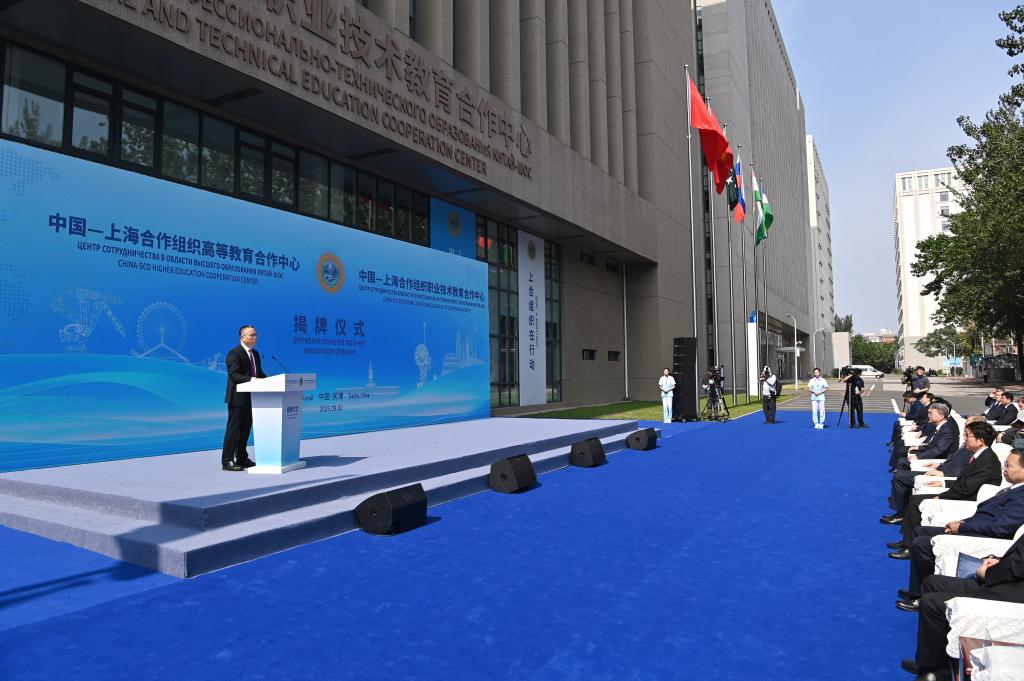 這是9月2日拍攝的中國(guó)—上海合作組織職業(yè)技術(shù)教育合作中心揭牌儀式現(xiàn)場(chǎng)。新華社記者 李然 攝