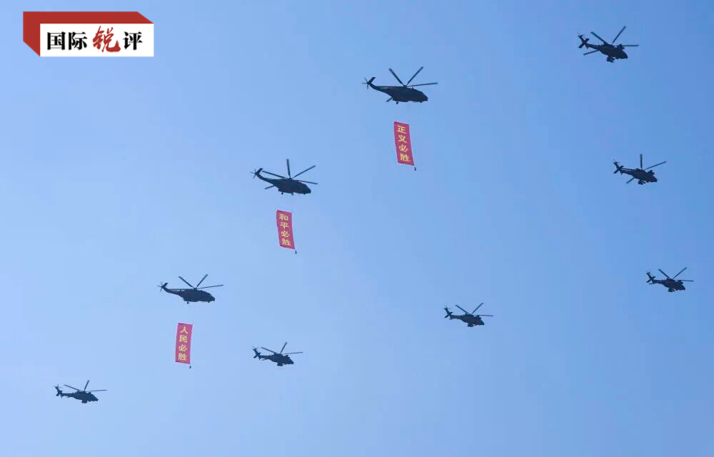 閱兵儀式上,一個(gè)細(xì)節(jié)引人關(guān)注:3架直升機(jī)分別懸掛“正義必勝”“和平必勝”“人民必勝”的條幅飛過天安門廣場(chǎng)。這“三個(gè)必勝”既是歷史啟示的偉大真理,也是對(duì)當(dāng)下和未來的重要啟迪。