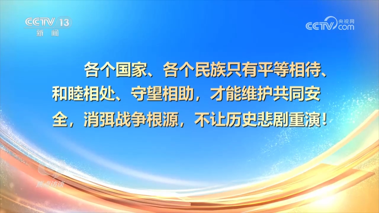 楊鳳城:“總書記在這次紀(jì)念抗戰(zhàn)勝利80周年的講話,還有過去的講話,都特別強(qiáng)調(diào)我們銘記歷史,緬懷先烈,不是為了延續(xù)仇恨,是為了珍愛和平,聚焦發(fā)展。中國共產(chǎn)黨不僅是這么說的,也是這么做的。我們提出了全人類共同價(jià)值,提出了構(gòu)建人類命運(yùn)共同體,實(shí)踐‘一帶一路’,說明什么?說明中國共產(chǎn)黨從中國人民,從自身的經(jīng)歷中,深深體會(huì)到和平的可貴,深深認(rèn)識(shí)到發(fā)展的重要。”