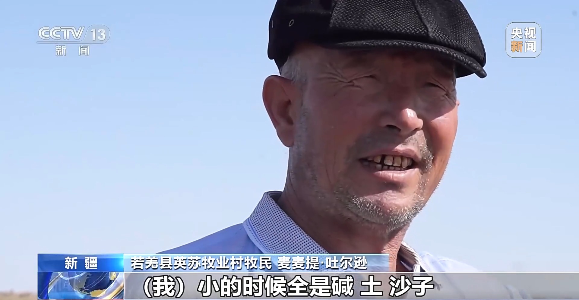 若羌縣英蘇牧業(yè)村牧民 麥麥提·吐爾遜:我小的時(shí)候全是堿、土、沙子,人走都走不動(dòng)。羊沒水,也沒草,死在這個(gè)地方了。